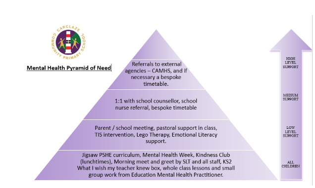 The image below details some of the support and interventions we provide to support pupils with their mental health and wellbeing.